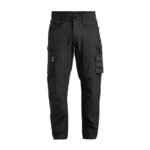 Smidig 4-veis stretch i slitesterkt ripstop-materiale. Forsterket stretch Cordura® i skrittet. Silikonbåndet i bukselinningen holder buksen på plass. Ekstra beltehemper på de største størrelsene. Romslige frontlommer og pene stolpelommer bak. Romslige benlommer med skjult glidelås og mobiltelefonlomme. Forbøyde knær med knebeskyttelseslommer med åpning fra innsiden i to posisjoner. Mesh i knefolden for ventilasjon. Forsterkninger i Cordura® og polyamid.