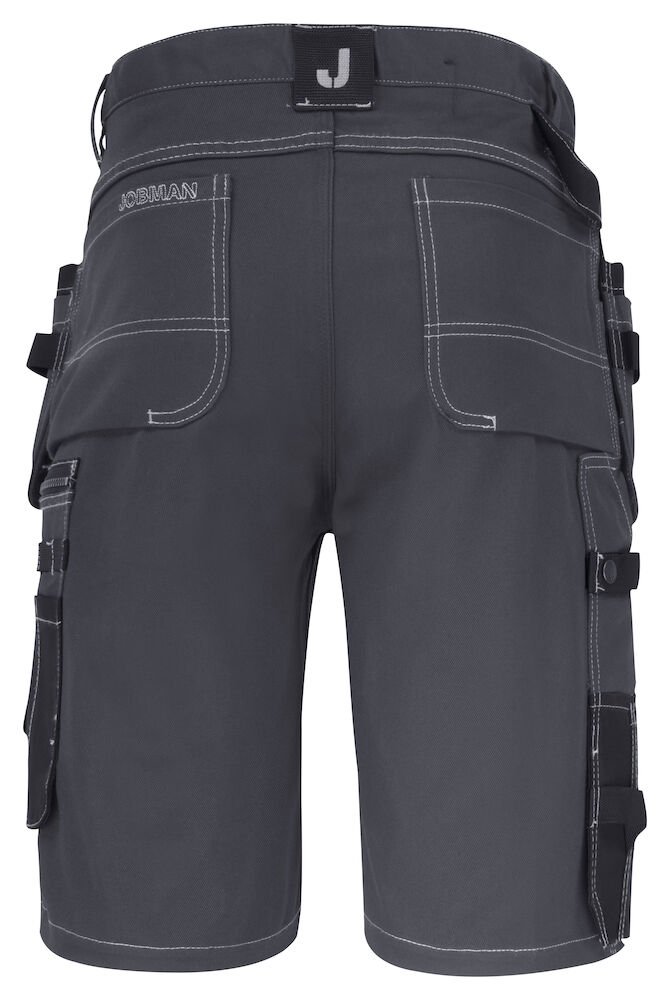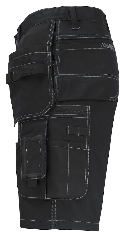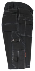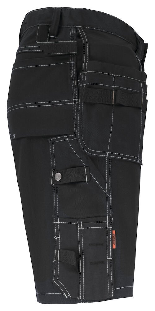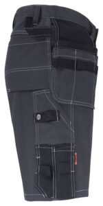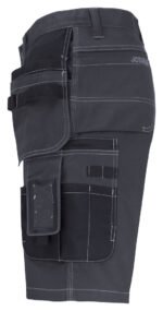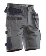 Romslige hengelommer som kan puttes i frontlommene. Romslige frontlommer. Baklommer med forsterket innside. Hammerhank. Ekstra beltehemper på de største størrelsene. Tommestokklomme med knivholder. Benlomme med glidelås, mobiltelefonlomme, ID-kortholder og ekstra rom.