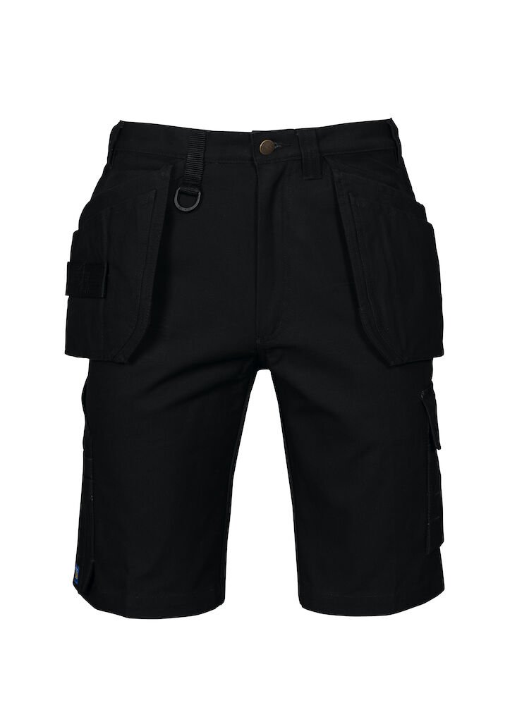 To hengende spikerlommer som kan puttes bort, en med ekstra lommer og en med verktøyshemper. Spikerlommene er forsterket med 100% Cordura®. Benlommer med plass til penn- og verktøy. Tommestokklomme med verktøyslomme og knivknapp. To D-ringer og regulerbare hammerhanker. Romslige baklommer. Benlommene bak har hemper for Inbags.