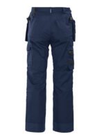 To hengende, spikerlommer som kan puttes bort; en med ekstra lommer og en med verktøyshemper. Spikerlommene er forsterkede med 100% Cordura®. Dype sidelommer med plass til hengelommene. Lårene er ekstra forsterkede med dobbelt stoff. Benlommer med plass til telefon, penn- og verktøy. To regulerbare hammerhanker. To D-ringer. Tommestokklomme med verktøyslomme og knivknapp. Knelommer i Cordura® med åpning fra innsiden og regulerbar høyde av knebeskyttelsene. Forbøyde knær. Forstekede nederst på baksiden av buksen med Cordura®. Romslige baklommer. Baklommer og benlommer har hemper for Inbags.