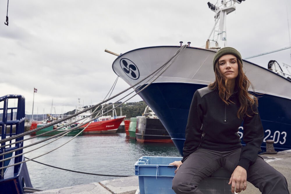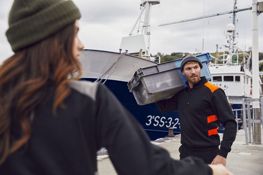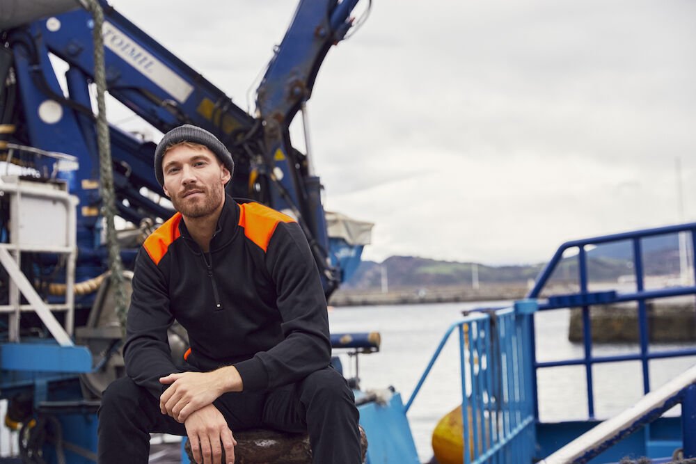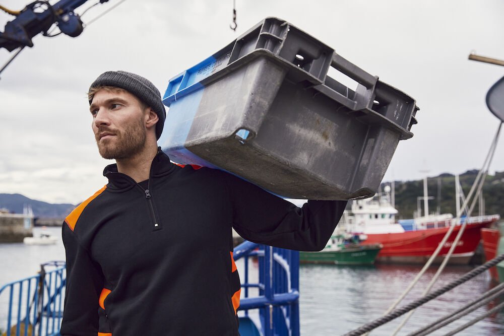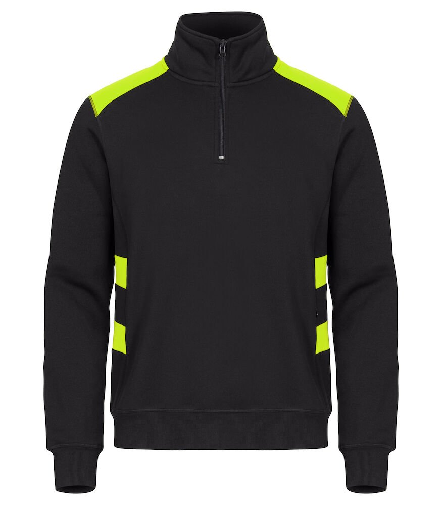 Kontrastfarget half-zip genser som gir økt synlighet. Genseren har en skjult sidelomme med glidelås. Ribb i mansjetter og nederkant. Laget av resirkulert polyester med en nydelig bomullsfølelse. Leveres med en lett avtagbar etikett for rebranding.