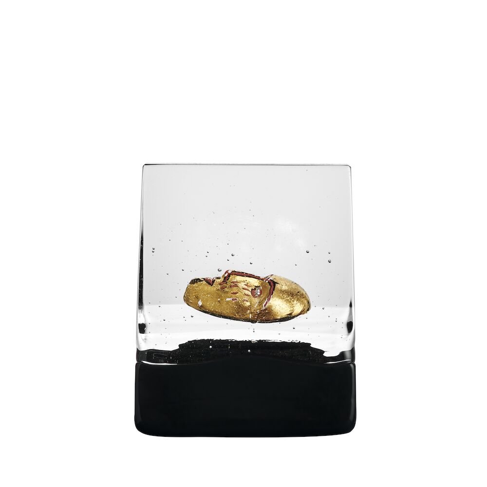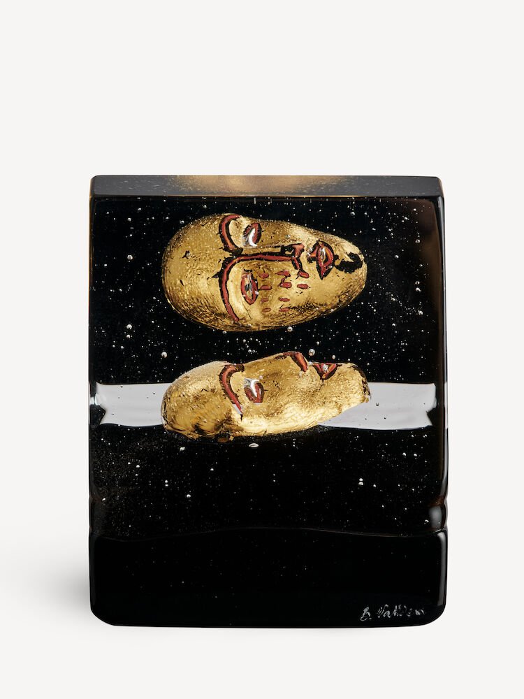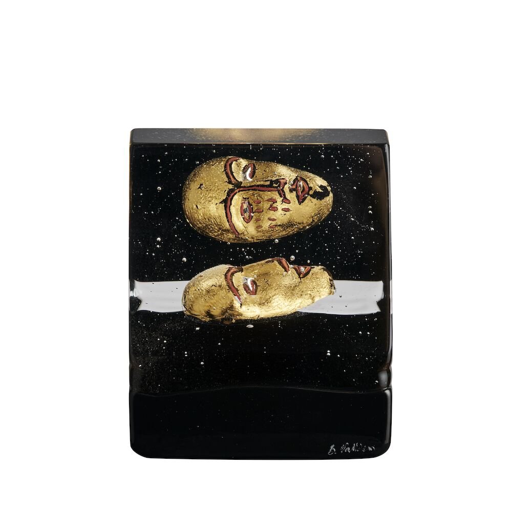 In Bertil Vallien’s world, we encounter the inner nature of glass. Clear glass is strongly contrasted against the opaque black plinth. Black Elements House of Mystery is cast in a charcoal mold with Vallien’s renowned hand-painted head, cast in the solid block of glass. This object is part of Kosta Boda Artist Collection.