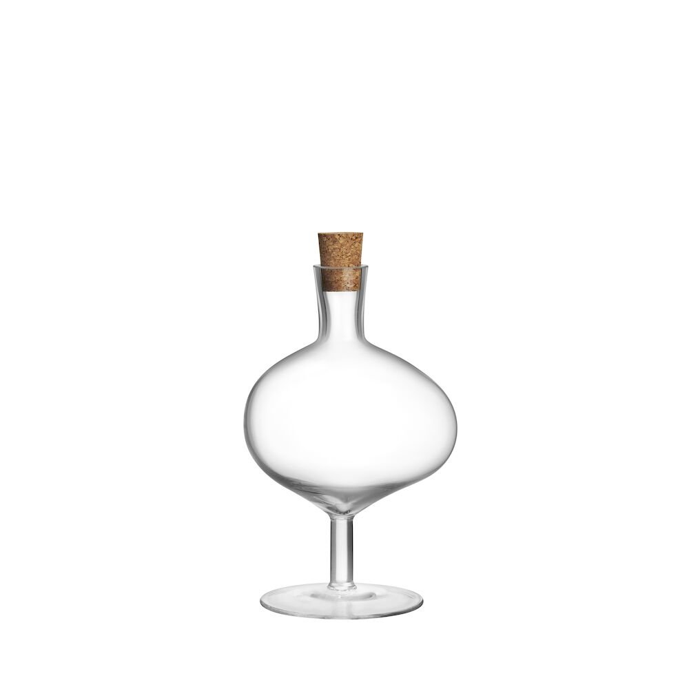Munnblåst glassflaske på stett. Fra Bod-serien. Kan brukes som pyntegjenstand, beholder eller vase. Kork inkludert.