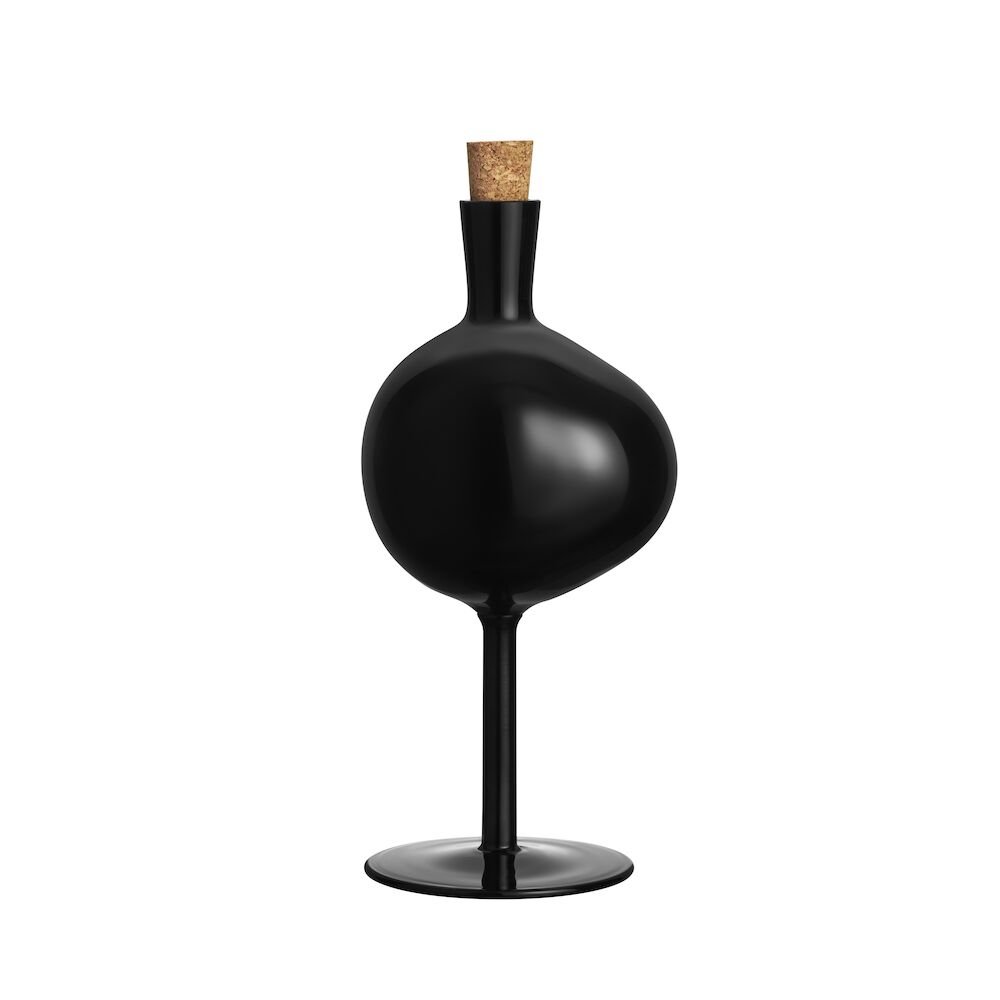 Munnblåst glassflaske på stett. Fra Bod-serien. Kan brukes som pyntegjenstand, beholder eller vase. Kork inkludert.