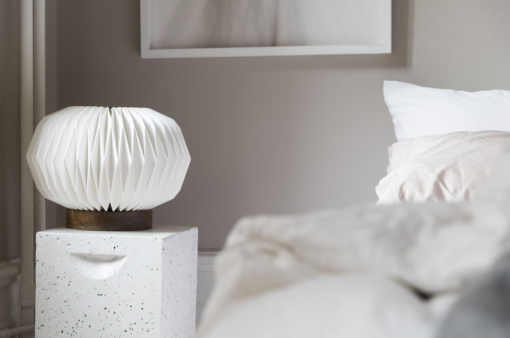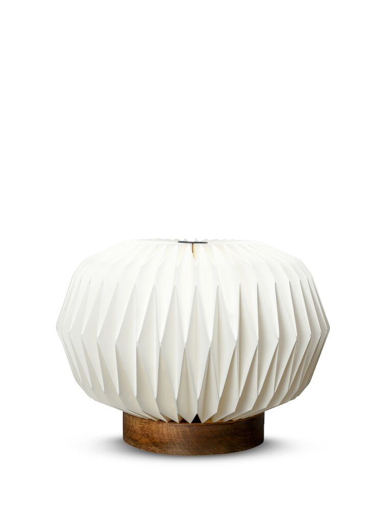 Kunsten å brette papir, origami, har en lang historie i Kina og Japan. En kunstform av edleste slag. Fra dette har bordlampen Origami sin inspirasjon – som et kunstverk i all sin enkelhet. Sammen med den tyngre trefoten skapes det en kontrast som er både interessant og spennende. Bordlampen Origami føles ny, men fortsatt klassisk.