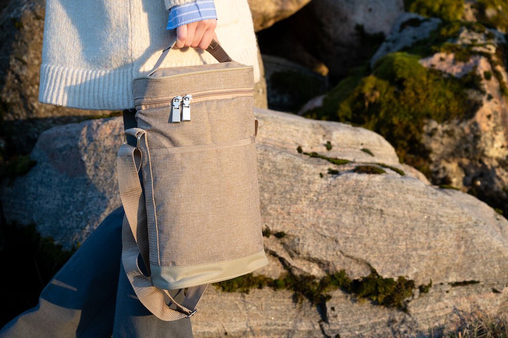 Praktisk og fin kjøleveske i lin-look. Passer til to vinflasker eller plastflasker på 1,5 liter.