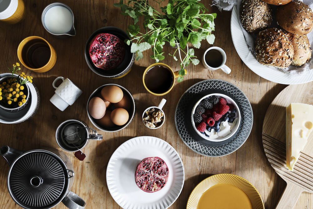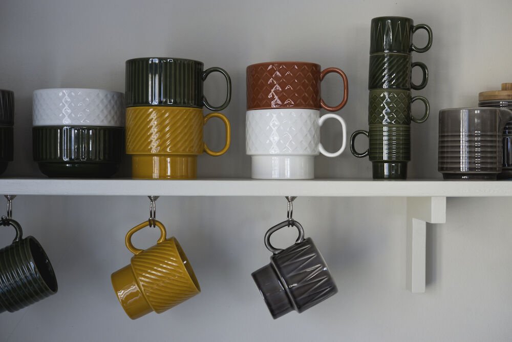 Kaffekrus med karakteristisk relieff. Kaffekruset er en del av serien Coffee & More, utviklet av Sagaform i samarbeid med designeren Margot Marolo. Seriens design er en flørt med 70-tallets direkte, lekne og klare språk. Serien finnes i ulike deler, mønster og farger og gjør seg best i en herlig blanding av alt! Tåler mikrobølgeovn og maskinoppvask.