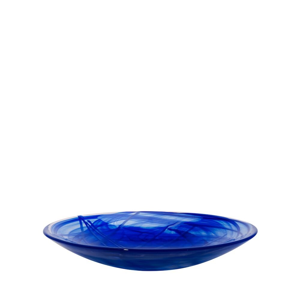 Contrast-serien fra Kosta Boda er produsert ved hjelp av en teknikk som kalles sentrifugering. Teknikken ble oppfunnet i det smålandske glassriket på 1950-tallet og skaper fargeslør inne i glassmassen. I kombinasjon med fargede glasspinner som tilsettes under prosessen, er hvert produkt unikt. Det blå/blå fatet er perfekt som serveringsfart, fruktfat eller alene som pynt. Design Anna Ehrner.