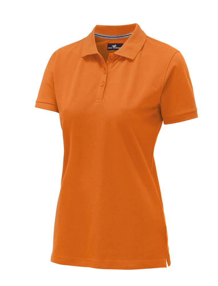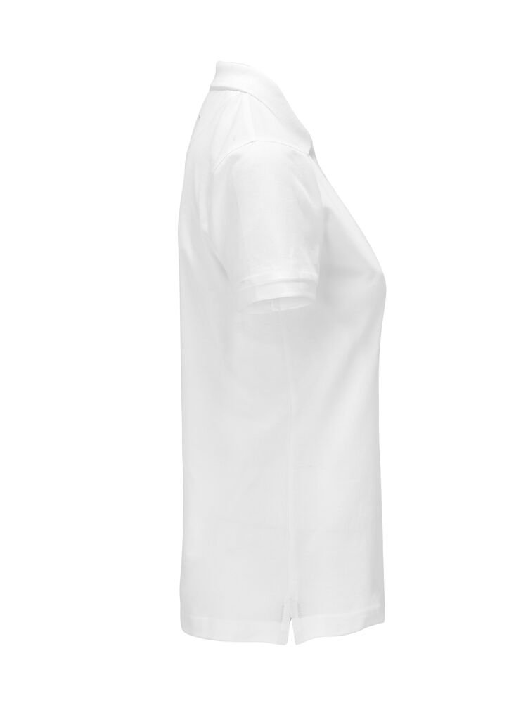 Pique med nakkebånd og splitt i siden, tre knapper på damemodellen og to på herremodellen. Brodert logo i nakken.