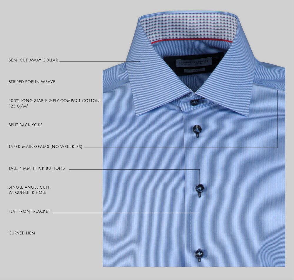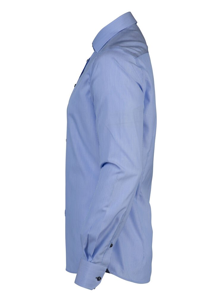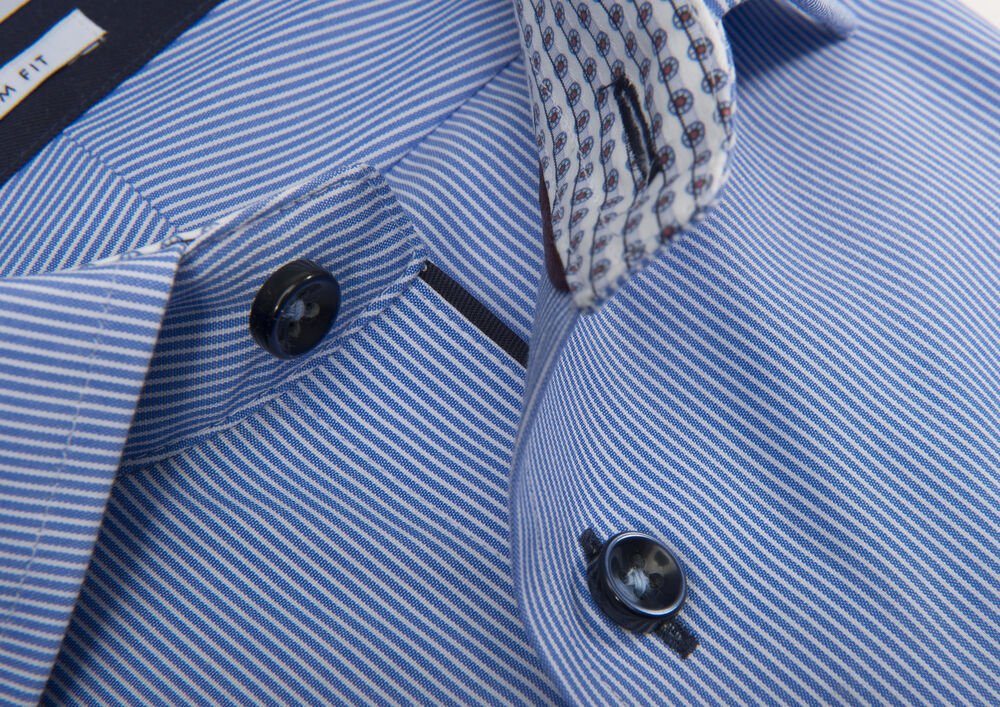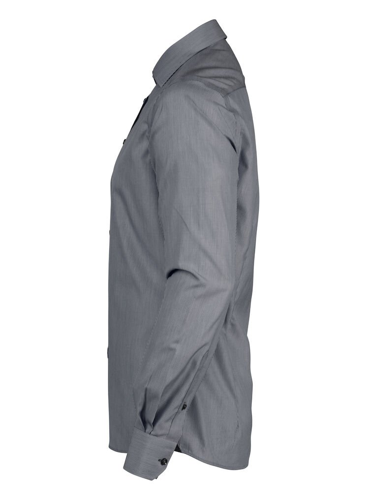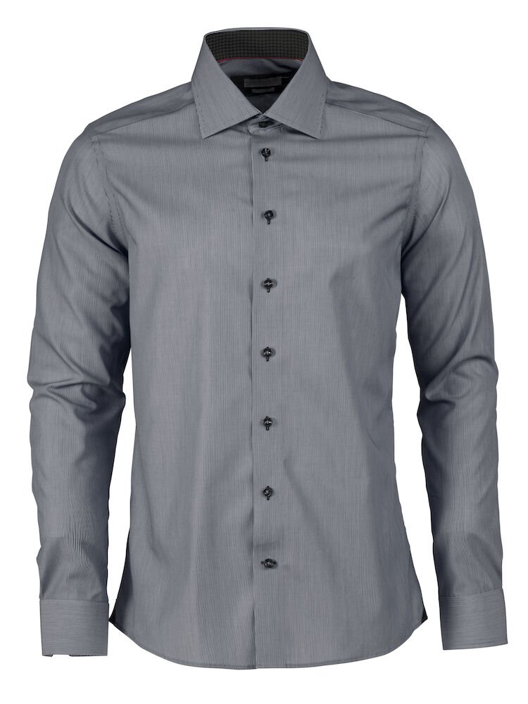 Hvite, tynne striper på en blå eller grå antrasittbase, gjør den til en stilig ny versjon av skjorte med klassiske striper. Skjorten er laget i vår favoritt fine-twill materiale, for en perfekt prestasjon. Vi har tilføyet moderne kontrastdetaljer sammen med standard spesifikasjoner som semi cut krage, flat front, vinklet mansjetter og delt bærestykke i ryggen. Skjorten er vell-designet for å ta deg fra kontoret til middagsfest på en dag.
