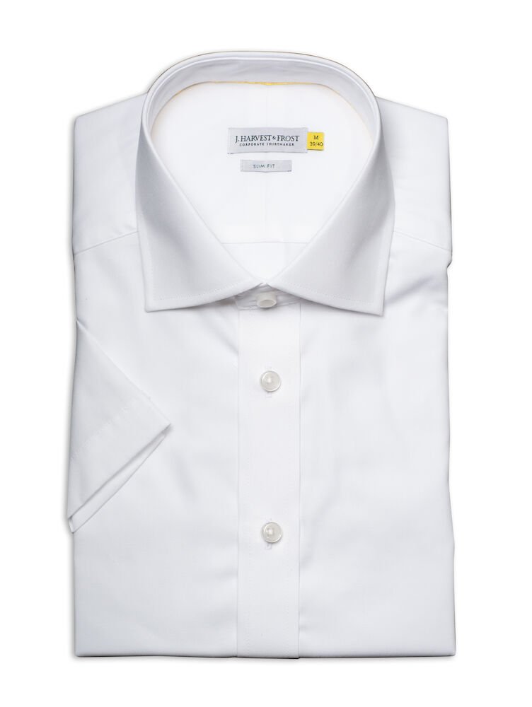 Yellow Bow skjorten med kort erm fra J. Harvest & Frost er laget av en blanding mellom bomull og polyester og er strykelette.