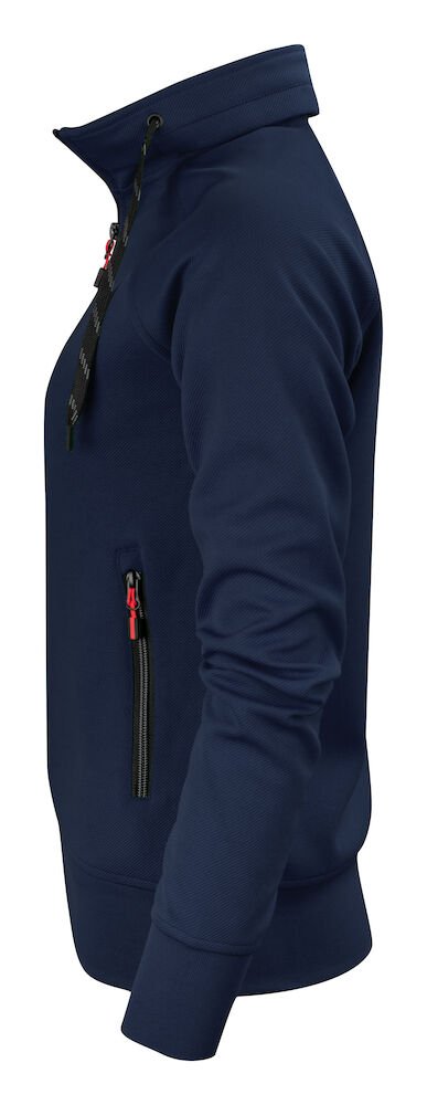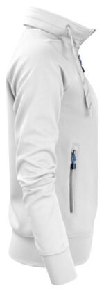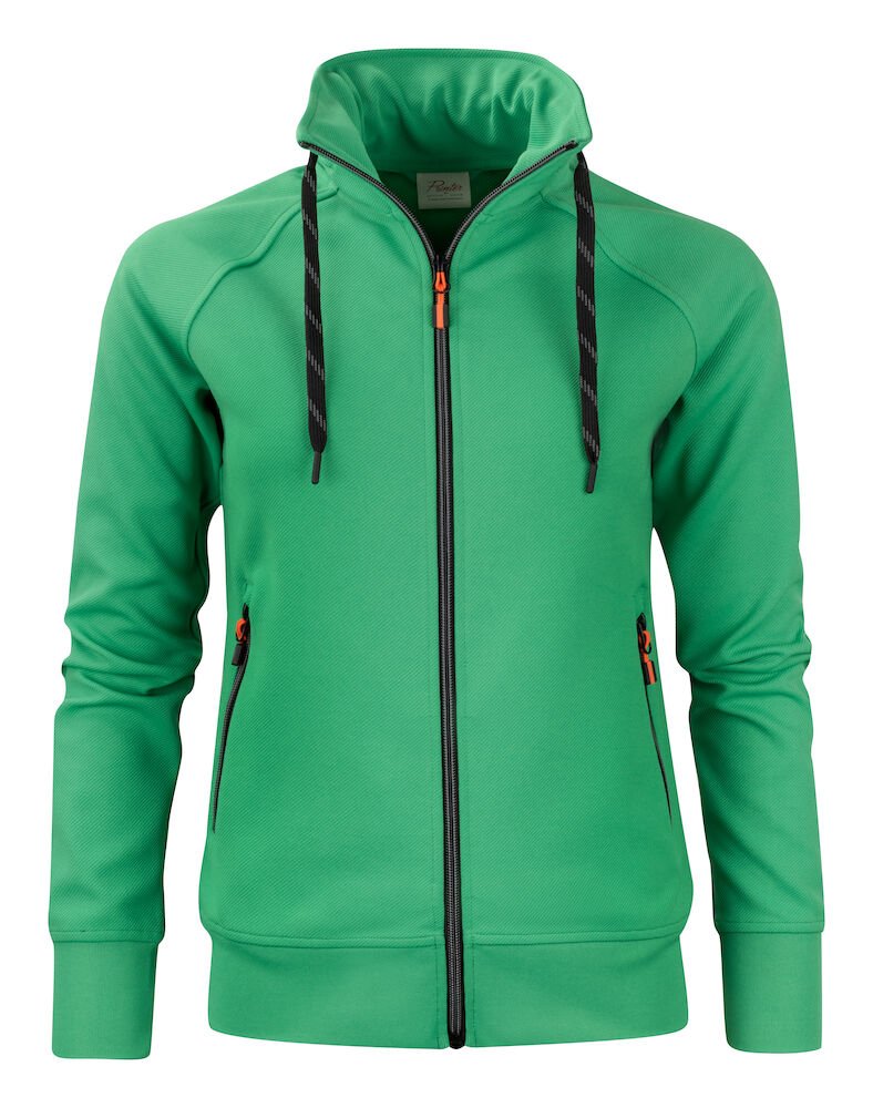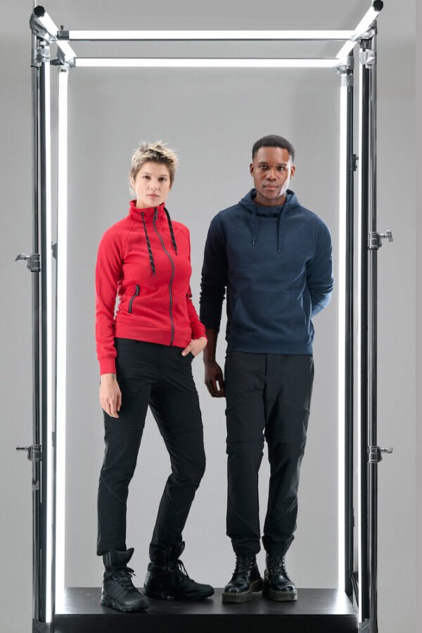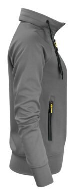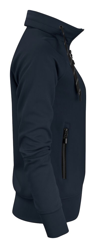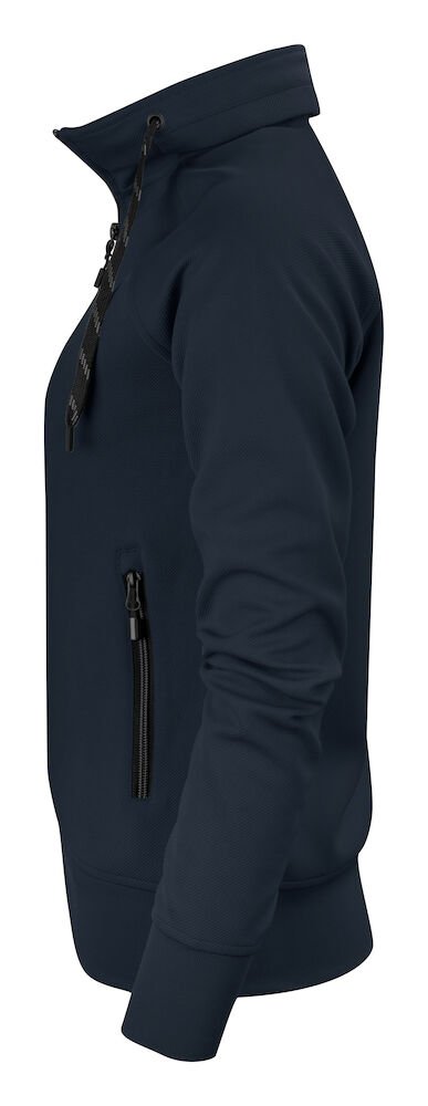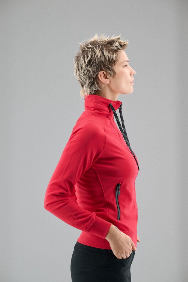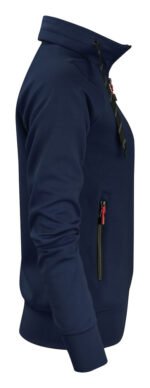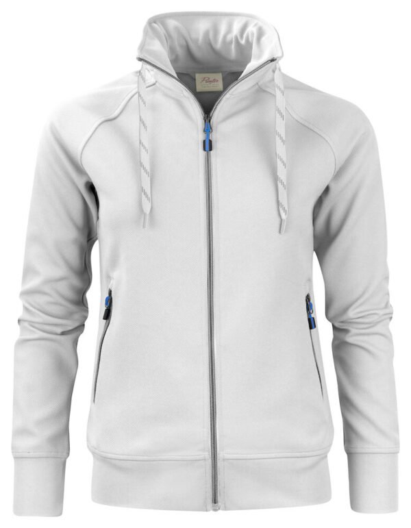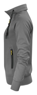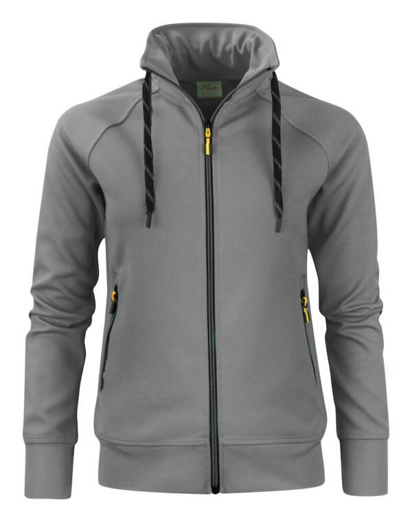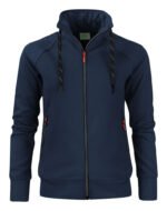 Sporty jakke med raglanermer og tofarget snor. Det er festet en kontrastfaget zip-puller på glidelåsen i front og på glidelåsen i sidelommene. Jakken har en skjult glidelås i kragen slik at man enkelt kan bytte ut snoren.