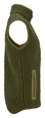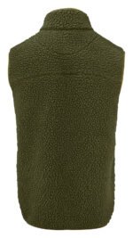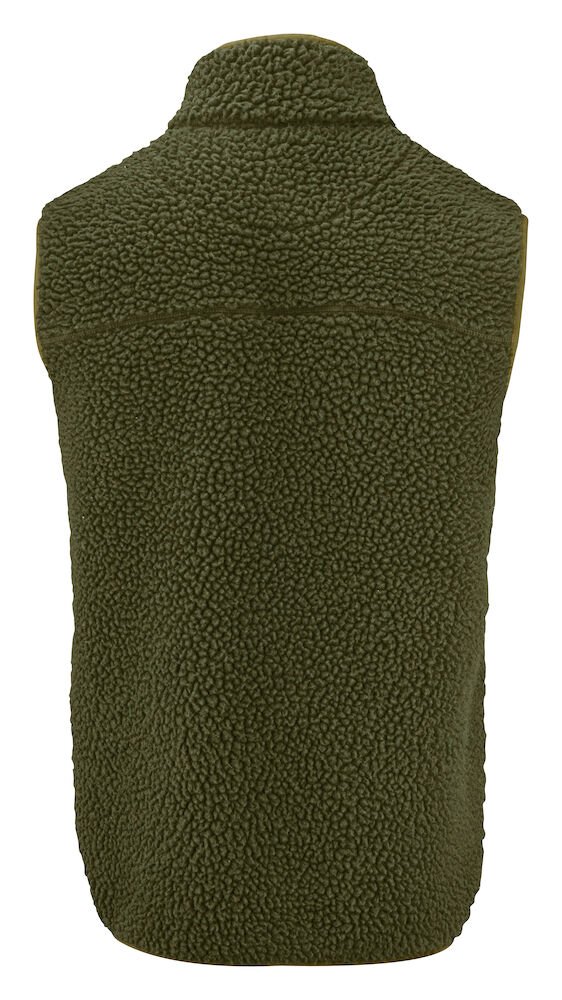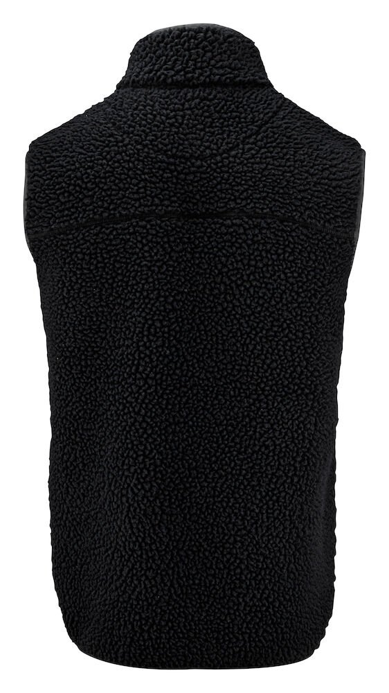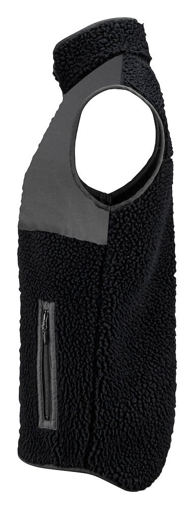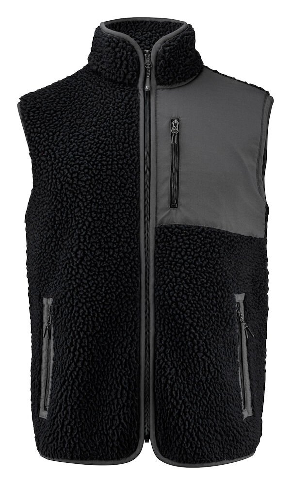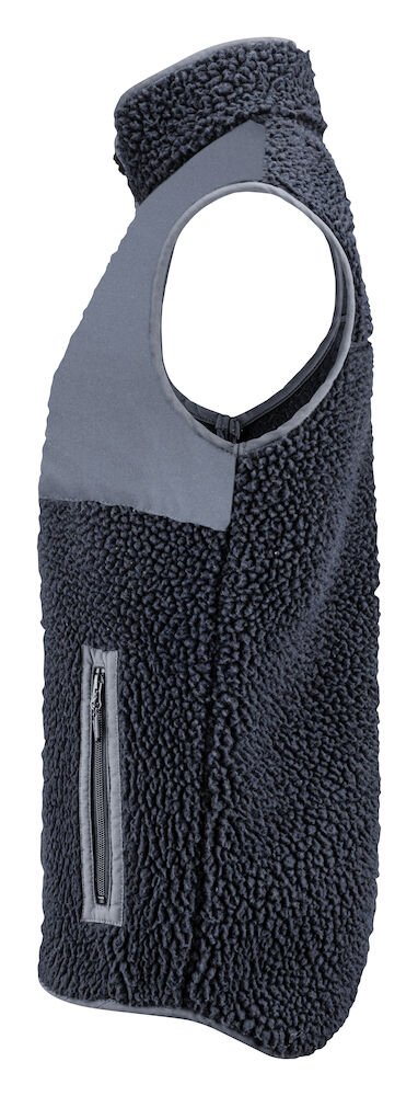 Tofarget fleecevest med kontrastmateriale på brystet, samt passepoil langs kanten på sømmene. Brystlomme og sidelommer med glidelås. Fleecevesten er pakket i en komposterbar polypose.