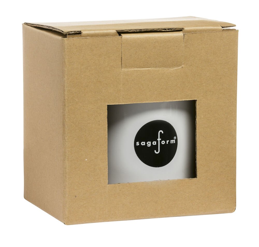 Naturfarget kruseske med åpning for eksponering av logo. Esken passer til ett krus.