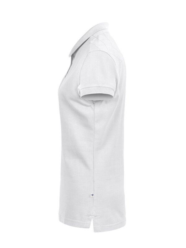 Velarbeidet pique med kontrastfargede detaljer. Dekorativ strikk på skulderpartiet. Kraftig dobbeltstrikket krage og matchende dekorbånd på innsiden.