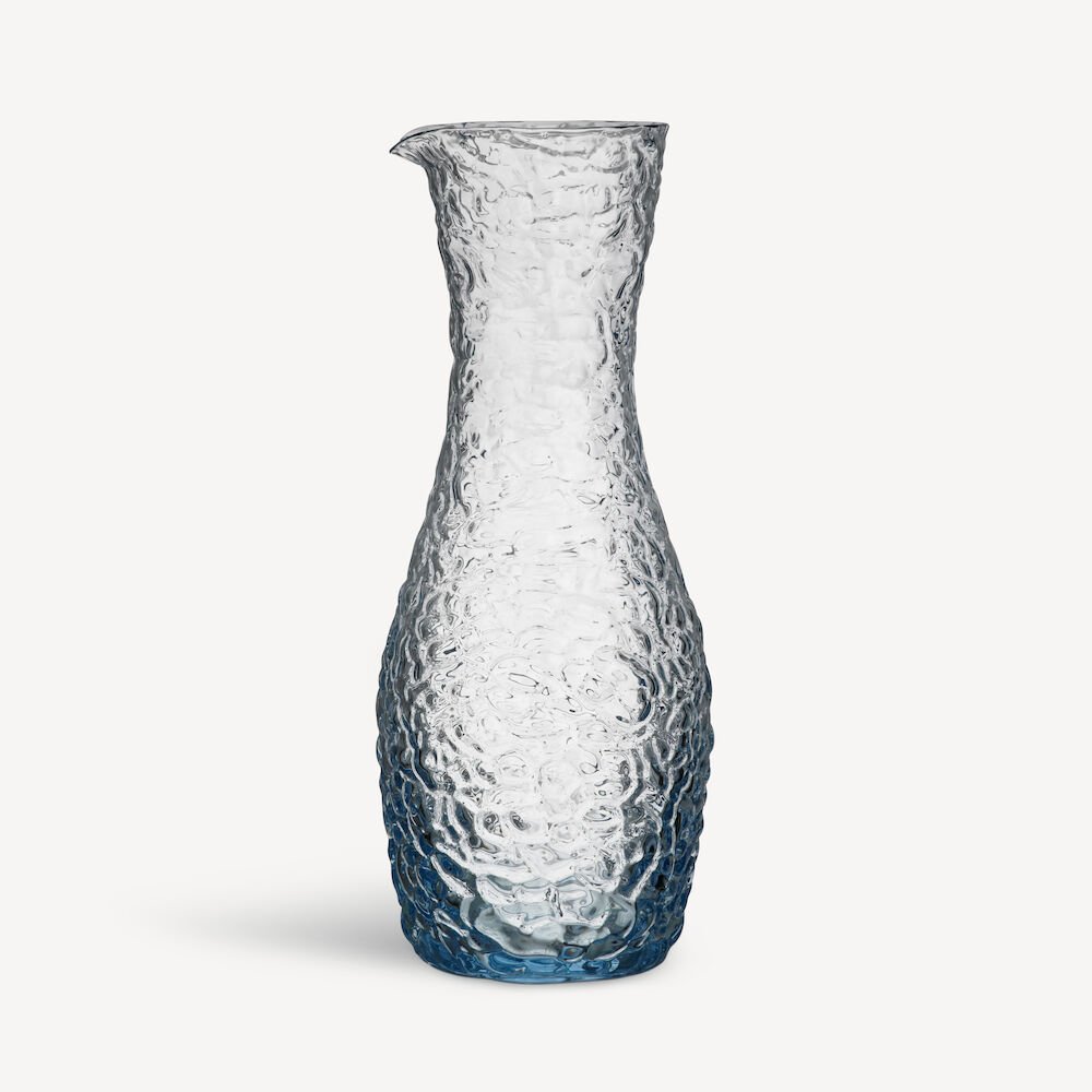 Med bærekraft i fokus! Moss karaffel fra Kosta Boda er laget av gjenbrukte, gamle former fra Kosta Glasbruk, skåret ut for hånd for å få frem nye former, noe som skaper den fastblåste strukturen. Glasset får unike fargevariasjoner fordi det er laget av sirkulert glass der det er benyttet knust glass og annet glassavfall. Små bobler kan også dukke opp i det resirkulerte glasset – et perfekt grunnlag for å fylle med enda flere bobler!