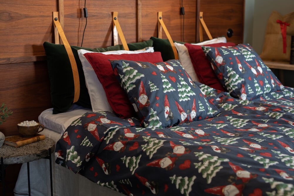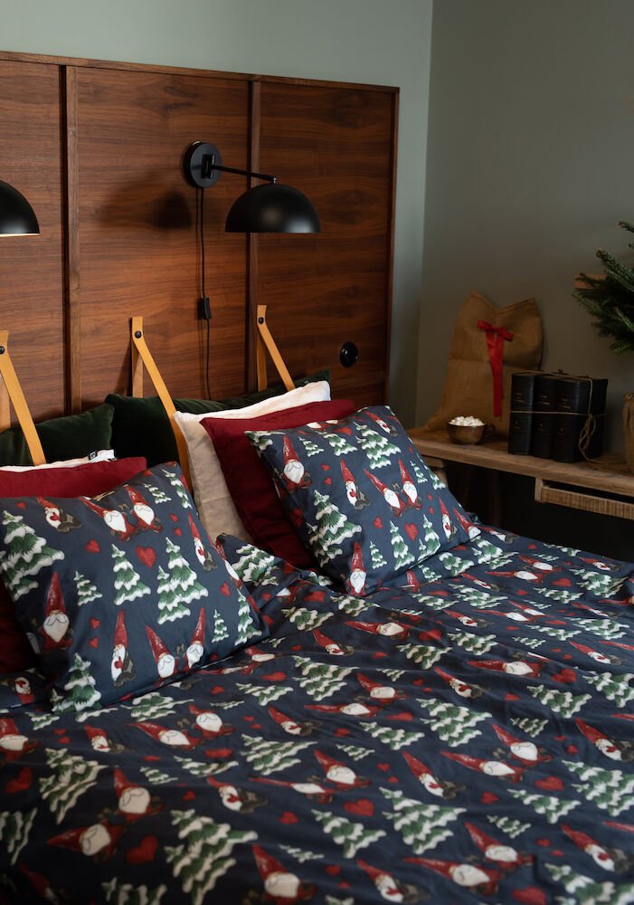 Få en herlig julestemning på soverommet med dette koselige sengesettet med nisser, grantrær og hjerter. Et sengesett fra Lord Nelson i 100 % bomull. Leveres i plastpose med banderole.