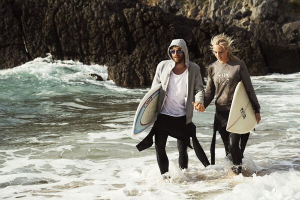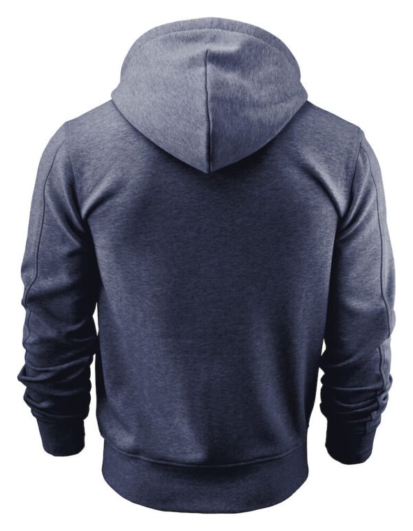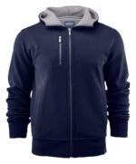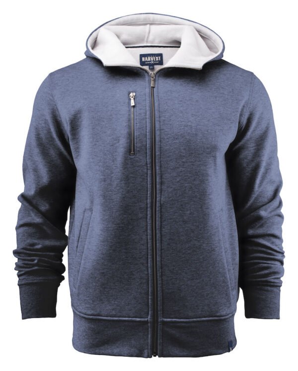 Hettejakke i double face materiale. Fleece på innsiden, bomull på utsiden. Metallglidelås i front og i lommen på brystet. Ribb i nederkant og i ermavslutning.