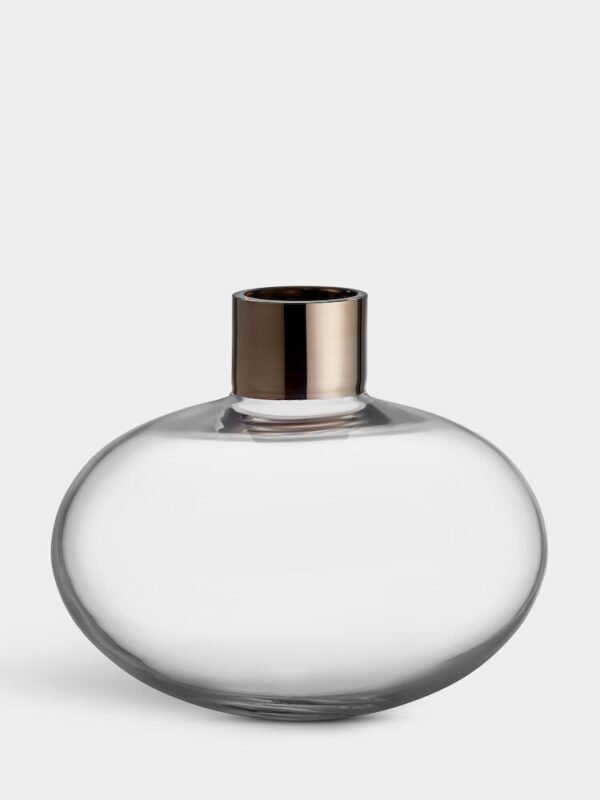 Pluto by Orrefors is mouth-blown and unmistakably Scandinavian. With its floating spherical shape, subdued colors and a metal finish, Lena Bergström has designed a series with a soft and minimalistic yet striking character. Not unlike its namesake orb. Pluto was introduced in 2018.