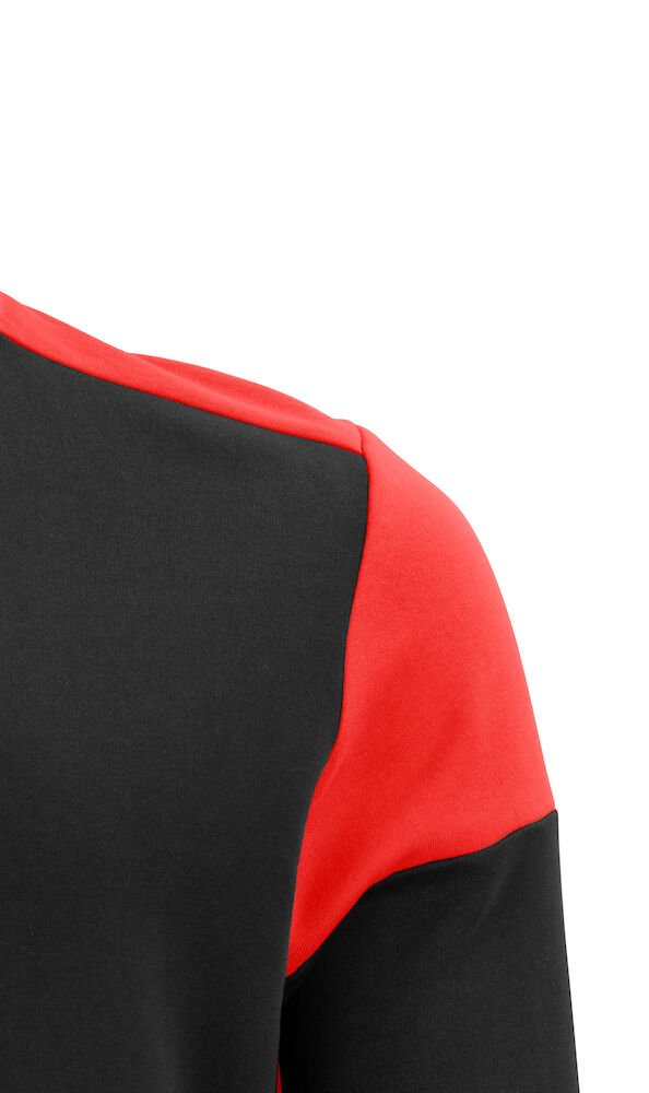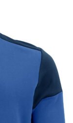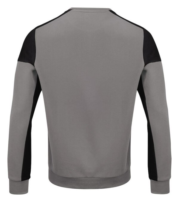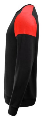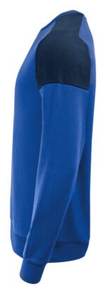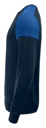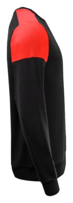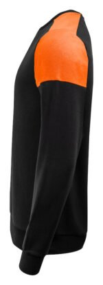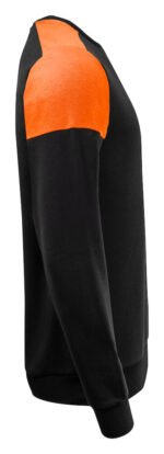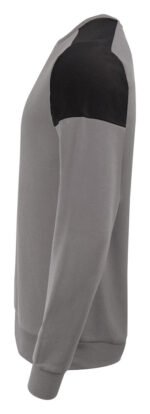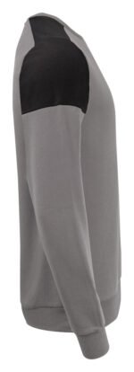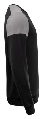 Tofarget genser med rund hals. Kontrastbånd i halsen. Børstet innside. 2×2 ribb i nederkant og i ermeavslutningene. Avrivbar halsetikett og separat vevd størrelsesetikett. I den indre venstre sidesømmen er det anordnet en lomme for å sy inn en vaskebrikke. Øko-Tex 100 sertifisert. Denne genseren kommer pakket i en komposterbar polypose.