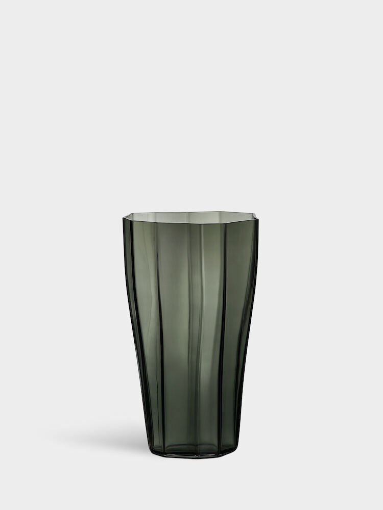 Med Reed viser Monica Förster hvordan man skaper en sterk karakter ved å fremheve folder i stedet for å prøve å skjule dem. Overført til glass gir det en følelse av forsiktig bevegelse i det harde glasset. Vasen er blåst i klart glass eller grønt. Den mellomstore Reed-vasen passer veldig bra til snittblomster.