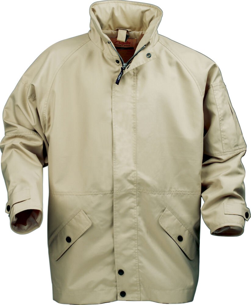 Vind- og vannavstøtende skalljakke med skjult hette i kragen. Jakken kan festes sammen med Squeeze polar.