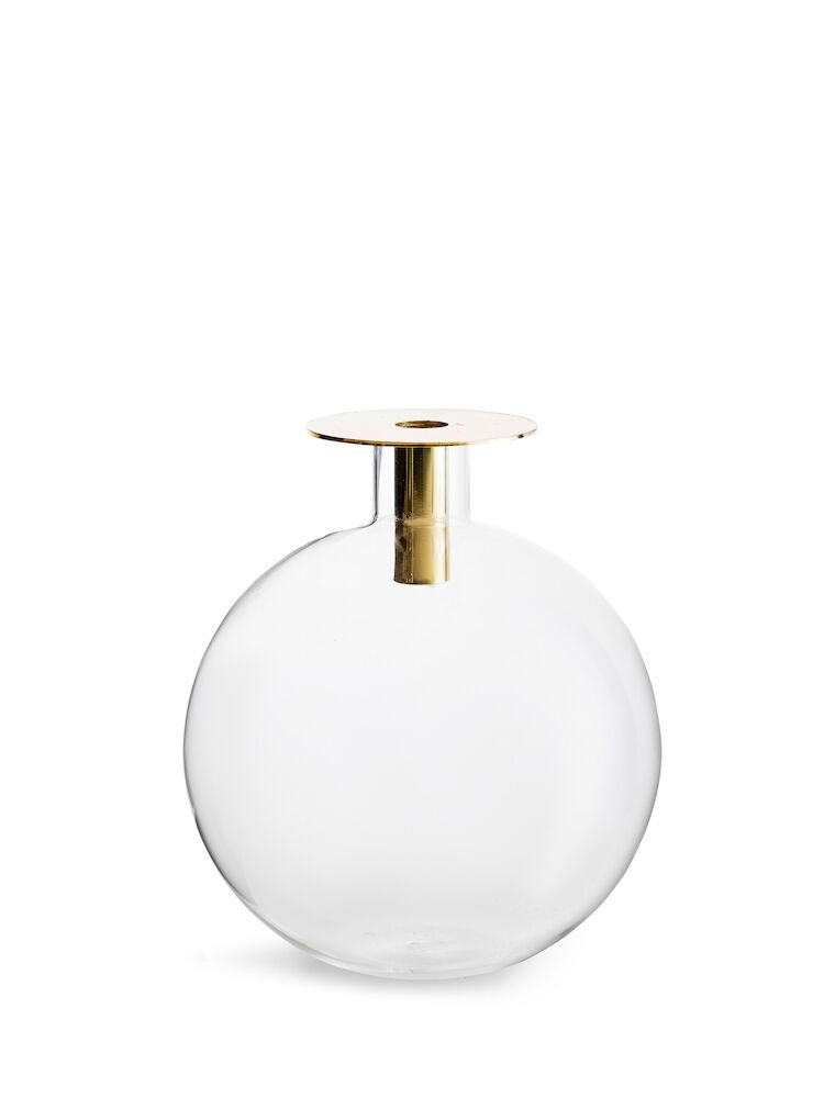 Top vase er laget av munnblåst glass og metall. En enkel, men dekorativ interiørdetalj som fungerer både som vase og lysestake. Metalldelen er avtagbar.