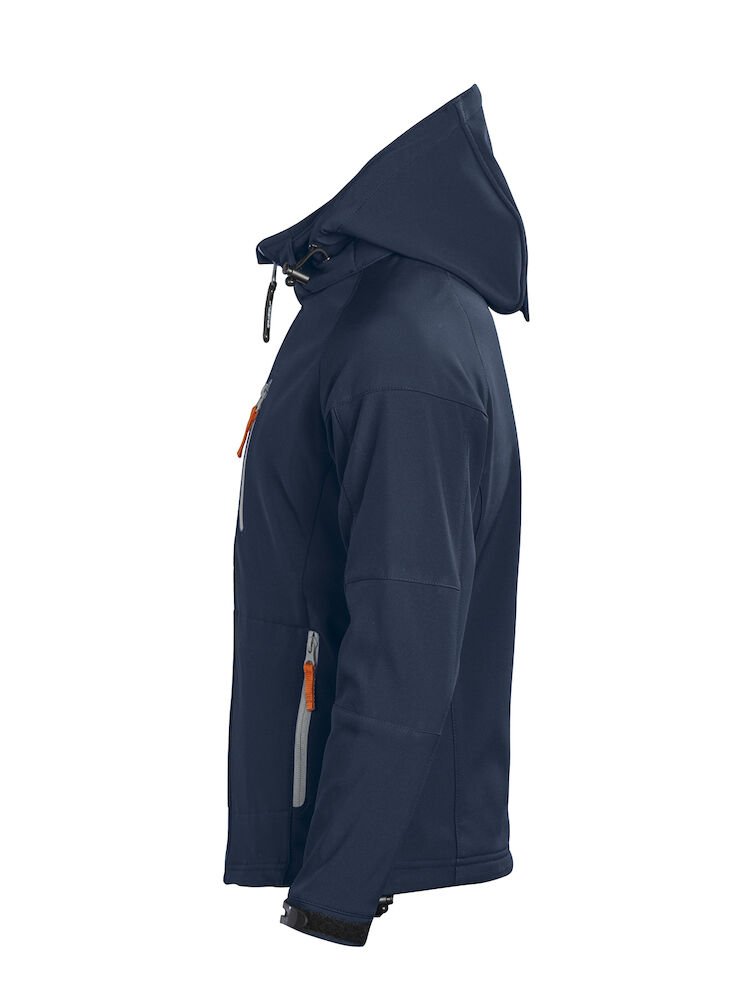 Softshelljakke med kontrastfarget microfleece på innsiden. Vind- og vannavstøtende (WP3000/MVP2000). Avtagbar hette og justerbar ermavslutning. Elastisk snor i hette og i nederkant. Bryst- og frontlomme samt innerlomme med glidelås.